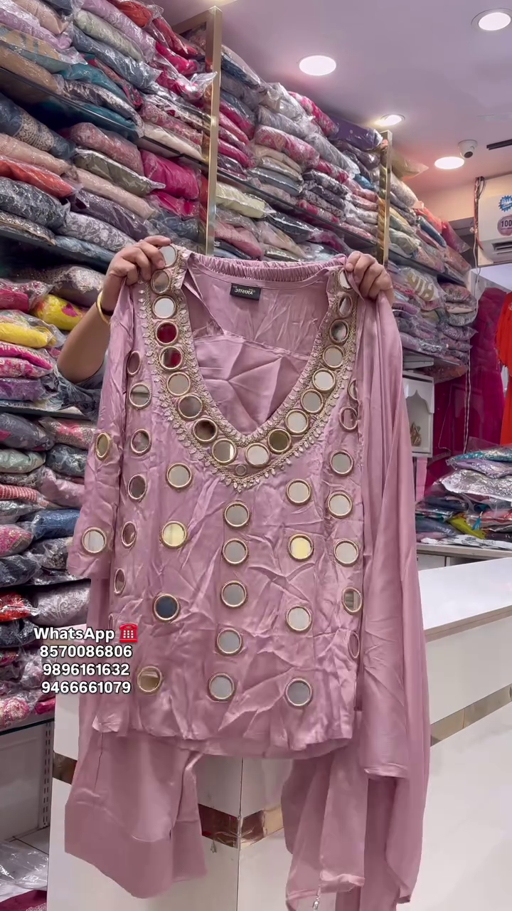 + Free ShippingThe Noorika Pink Tissue Suit Set radiates festive charm with its luxurious sheen and handcrafted details. Designed in a rich tissue fabric, this ensemble features exquisite mirror work outlined with fine gota embroidery on the neckline, cuffs, and hemline. The matching palazzo and dupatta enhance its regal look, while the soft pink tone adds a delicate, feminine glow. Ideal for festive gatherings or pre-wedding functions, this outfit is an ode to traditional Indian craftsmanship with a modern, graceful twist.