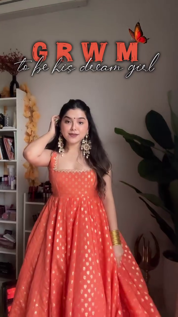 Elegant, vibrant, and timeless — this Orange Gold Foil Anarkali is a must-have for every woman who loves to stand out while staying rooted in tradition.