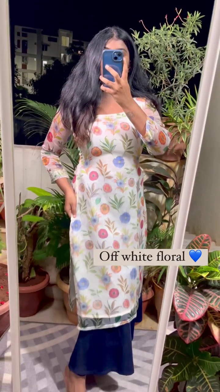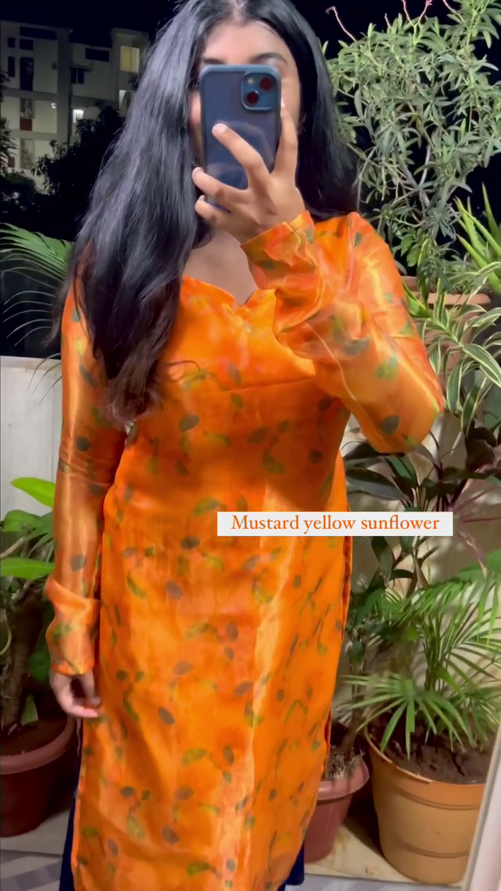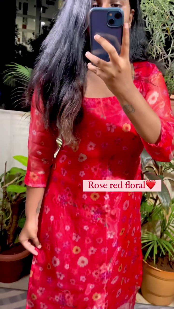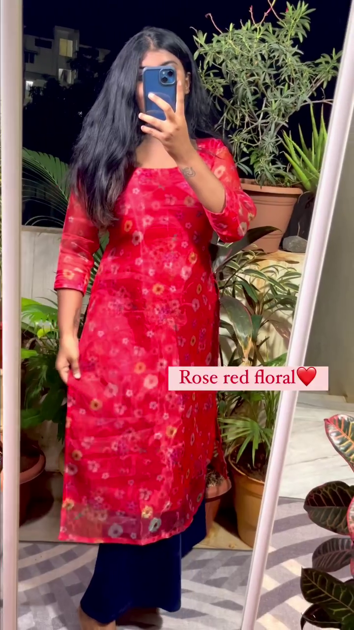 PRODUCT DETAILS: 3-piece set featuring calf-length A-line kurta with embroidered yoke, 3/4th sleeves, paired with straight-fit pyjama with pocket and printed organza dupatta finished with scallop edge zari Dori embroidery.