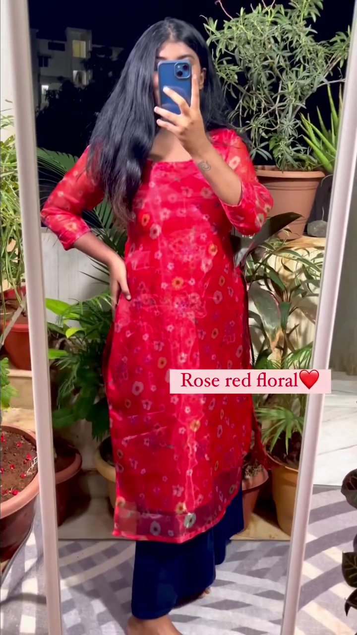 Women’s Kurta Pant Set with Embroidered Organza Dupatta